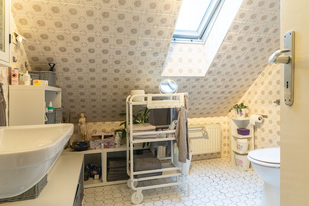 Über eine stilvolle Holztreppe mit gedrechseltem Geländer und Laminatstufen gelangt man durch eine Schiebetür in die zweite Wohneinheit, die sich mit ca. 83 m² Wohnfläche über das 1. und 2. Obergeschoss erstreckt. Im 1. Obergeschoss befindet sich die helle Wohnküche mit direktem Zugang zur Dachterrasse – einem besonderen Highlight des Hauses. Mit ihrer ruhigen süd-west Lage und dem Blick ins Grüne lädt sie zum Verweilen ein. Vom Küchenbereich aus sind zudem das Esszimmer und das angrenzende Wohnzimmer bequem erreichbar. Im Dachgeschoss befinden sich zwei Schlafzimmer sowie ein Duschbad mit Tageslicht.